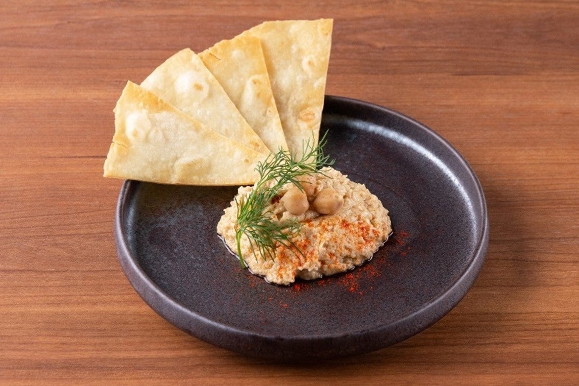 ひよこ豆、‘白ねりごま’、‘純正ごま油’を合わせたフムスは、通常より‘白ねりごま’をたっぷり加えることで、