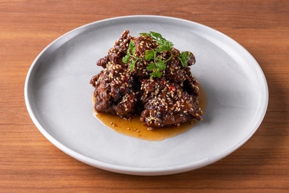 ‘純正ごま油’入りスイートチリソースを絡めた一品。