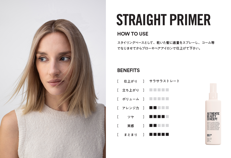 ピュアな香りとともに、なめらかなストレートスタイルをつくるミストプライマー。