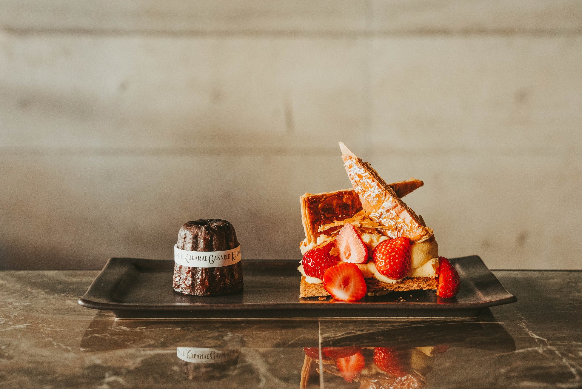 1階で提供する「クラマエ・カヌレ」の素材をすべて最高級品にグレードアップし、”カヌレ専用卵”を使用したプレミアムカヌレ「グランカヌレ」を提供するカフェになります。フレンチのシェフが「グランカヌレ」と一緒にお召し上がりいただくために開発したオリジナルスイーツプレートを用意しました。その他、季節ごとのメニューやカヌレの味わいに合わせて特別にブレンドしたKURAMAE CANNELEオリジナルの「カヌレ ド ティ」なども楽しめます。