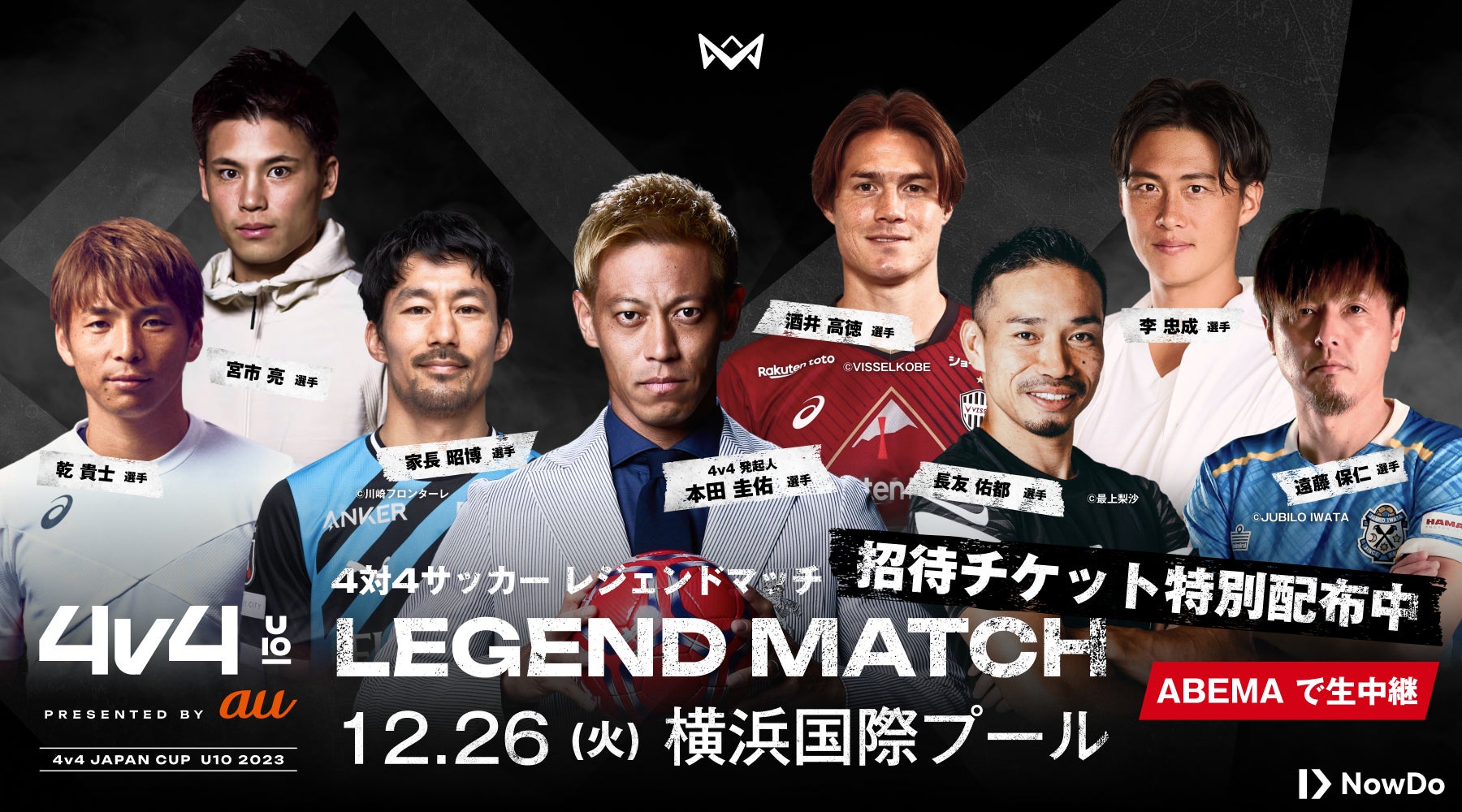サッカー界のレジェンドが【4v4 U10】の全国大会に大集結。発起人・本田圭佑をはじめ、長友、遠藤、乾、家長、酒井、宮市、李の8名の超豪華メンバーがレジェンドマッチで夢の対戦。