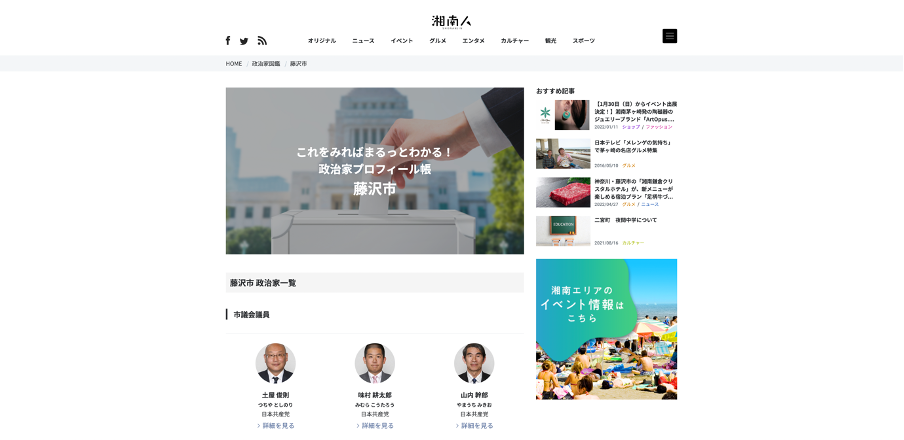 【湘南人】湘南エリアの政治家を一覧で確認できる「政治家プロフィール帳」をリリース