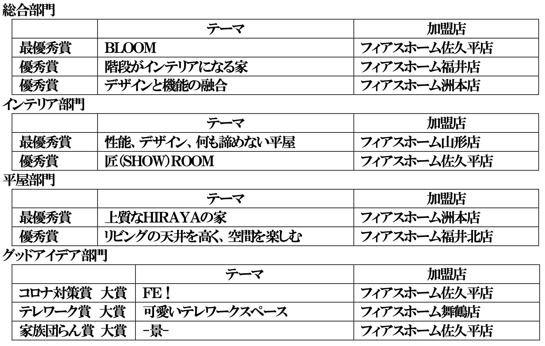 ・選考方法:応募作品は、フィアスホーム本部にて1次選考を行い、上位作品をフィアスホーム加盟店の投票にて決定