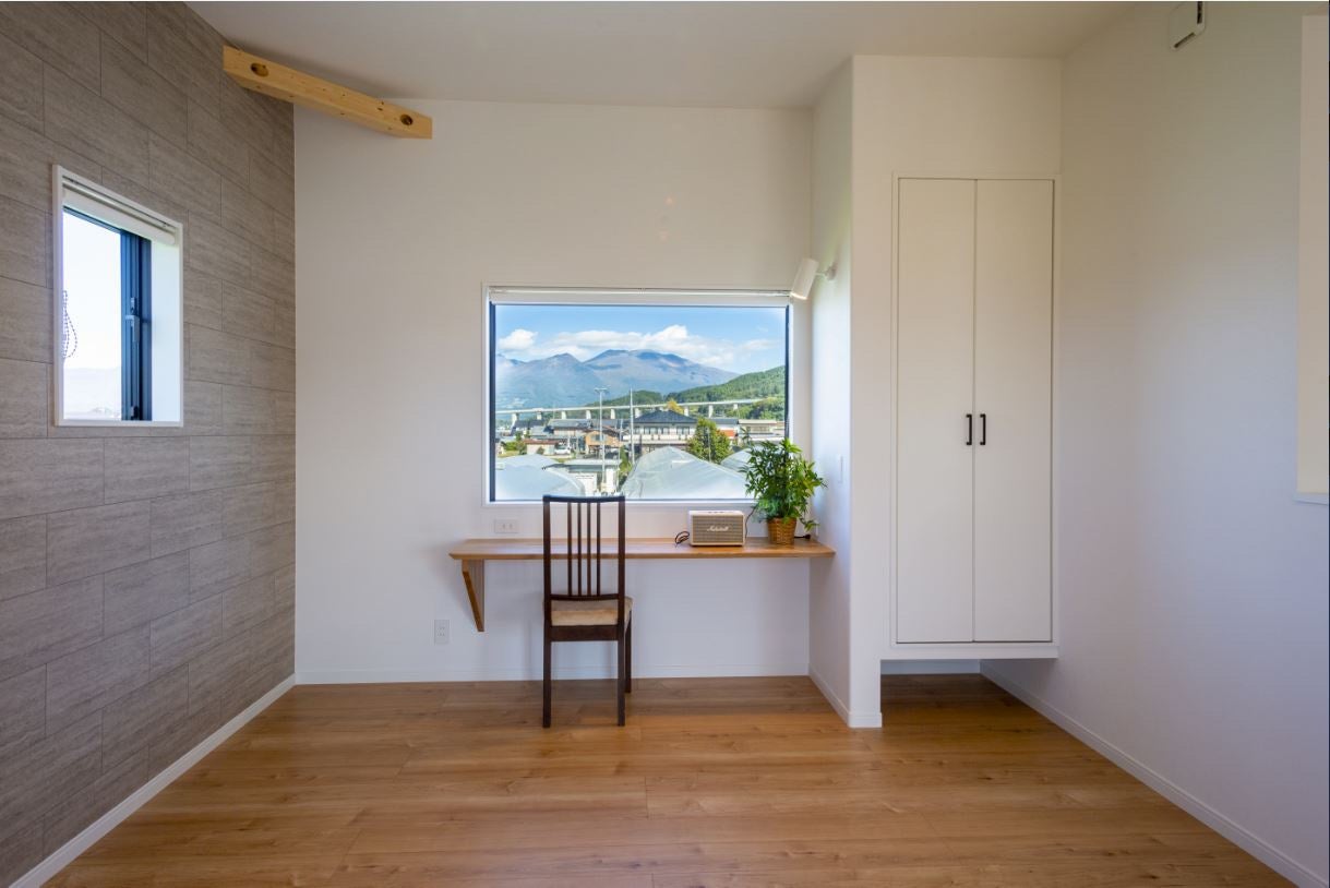 団らんシーンを盛り上げるとともに、ワークカウンターから絶景を眺め、気分転換をしながら仕事・宿題ができる工夫です。北は浅間山、南西のバルコニーからは八ヶ岳。最高の眺望をリビングという特等席から味わいます。