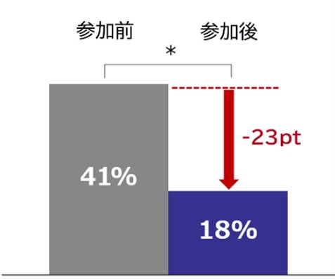 プログラム参加前1か月間と参加後1か月間の目の調子を0~10の11段階で自己評価してもらったところ、目の調子が悪いと回答した人※1の割合は41%から18% と23ポイント減少しました。