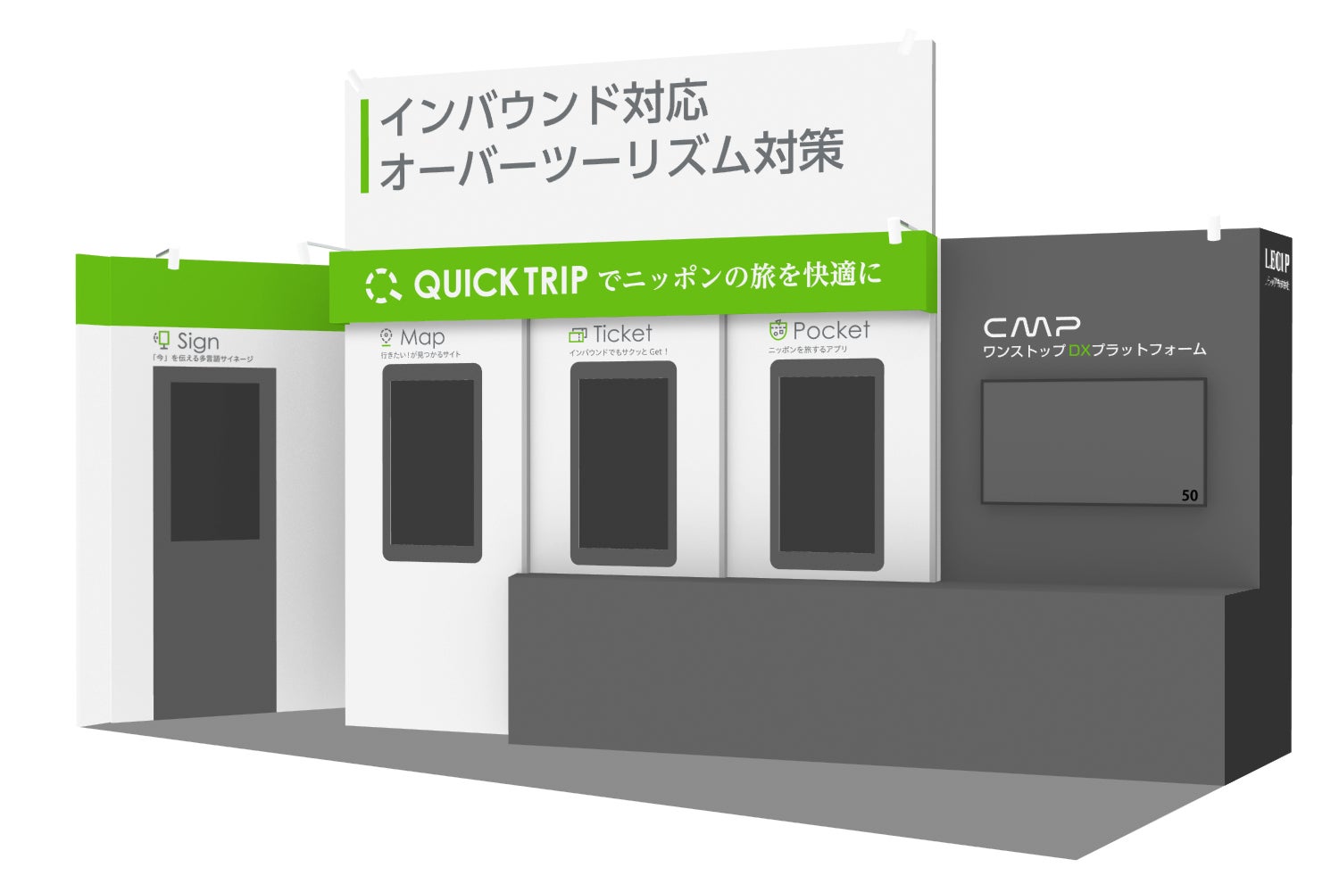 レシップは、インバウンド対応やオーバーツーリズム対策など、地域の観光課題をまとめて解決できる観光DXワンストップソリューション「QUICK TRIP」を展示し、インバウンド対応に関する課題を解決するDXソリューションを提案します。