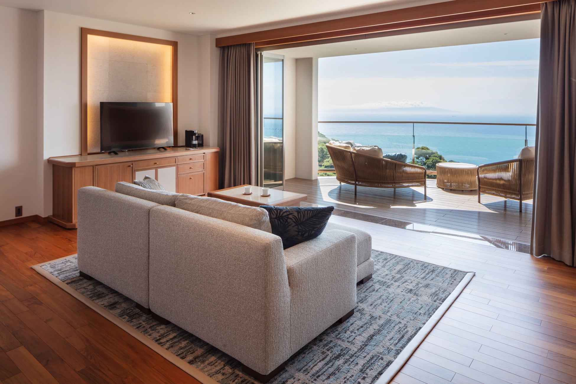 朝は陽光にきらめく海を眺めながら深呼吸し、夕暮れには茜色に染まる空と海が織りなす幻想的な景色に癒される。ここでしか味わえない、圧倒的な絶景とともに、心も身体もゆるやかに満たされるひとときをお過ごしいただけます。