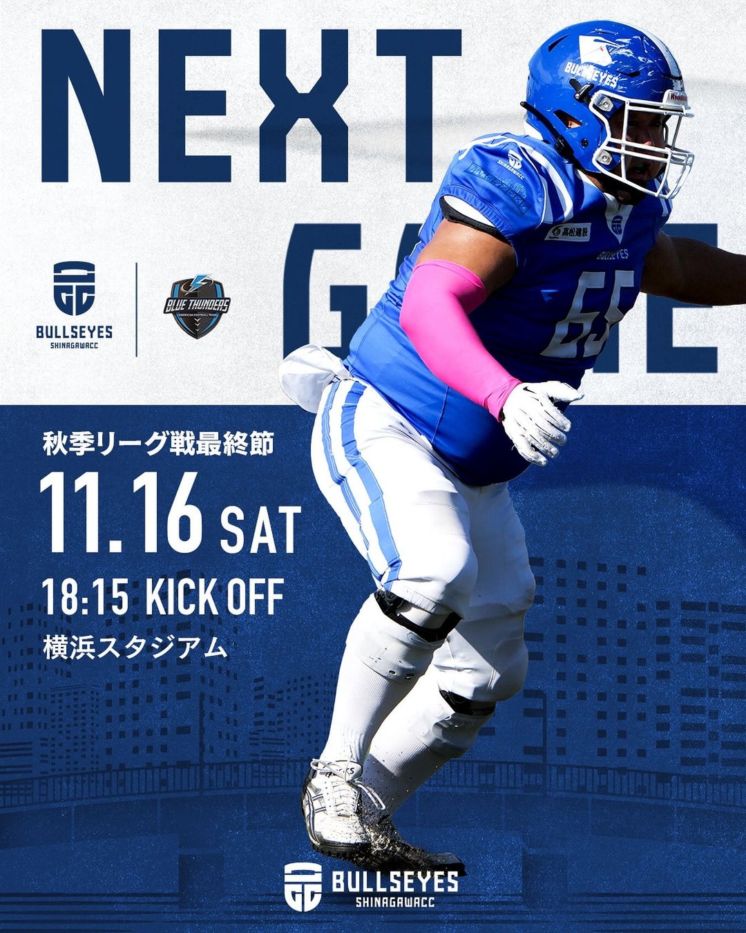 【横浜スタジアムをブルーで染める】11月16日(土) アメリカンフットボール Xリーグ 品川CC ブルザイズ vs ブルーサンダース 〜 "Change" 最終節 の決戦へ〜
