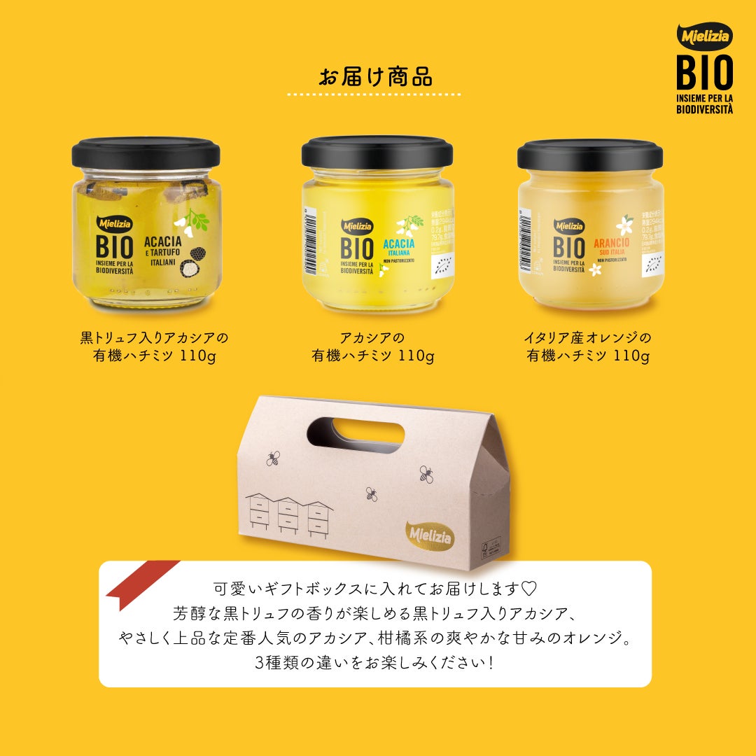 3種類のはちみつ食べ比べ!イタリアのオーガニックはちみつ【ミエリツィア】より、ギフトボックスが当たるプレゼントキャンペーンを開催