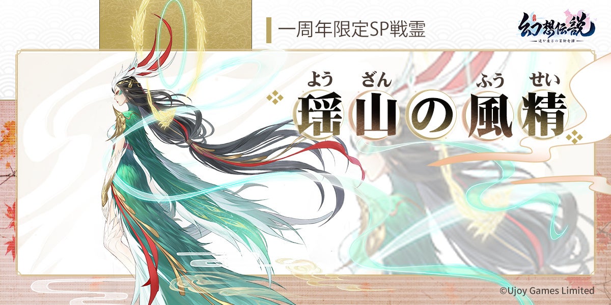 1周年限定の新SP戦霊「瑶山の風精」が登場しました! 7日ログインボーナス(10月16日〜10月22日)にログインすることで、必ず「瑶山の風精」を1体ゲットできます! 「瑶山の風精」の入手方法は欠片合成のみであり、通常開催されている「通常召喚」と「高級召喚」では入手できません。このレアなチャンスにぜひご参加ください!