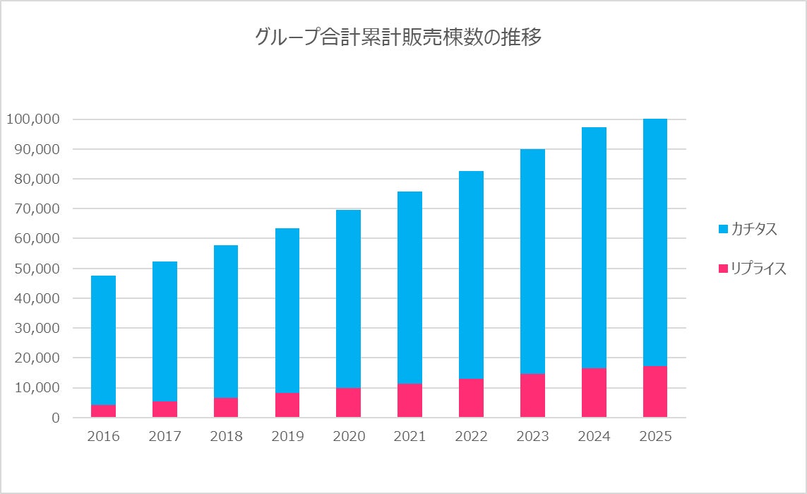カチタス・リプライスのグループ合計販売累計棟数が10万棟に到達しました
