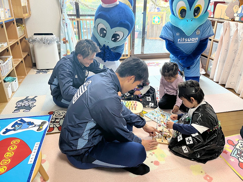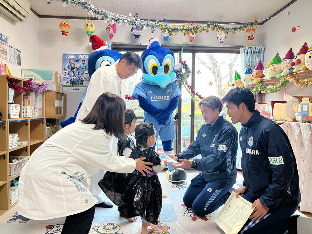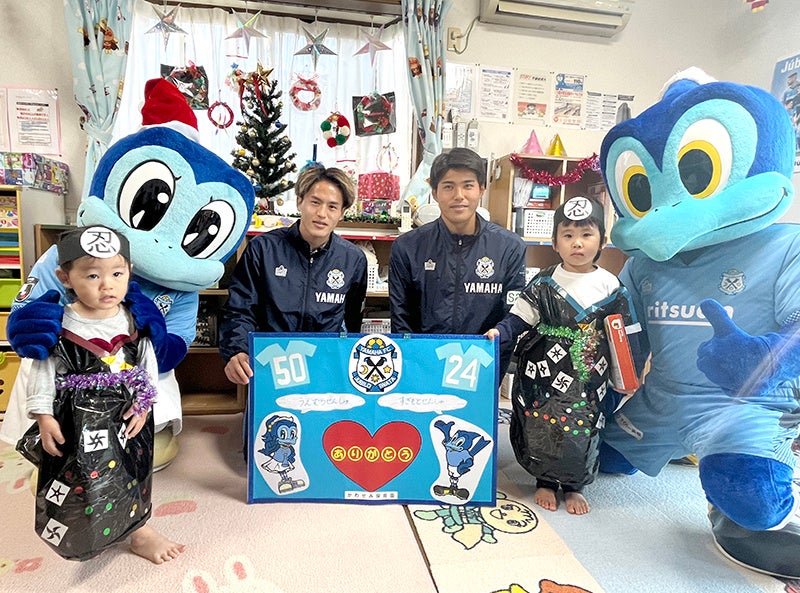 贈呈式には杉本光希選手・植村洋斗選手、ジュビロくん・ジュビィちゃんが参加し、贈呈後には両選手が子どもたちと一緒におもちゃで遊んでくださいました。
