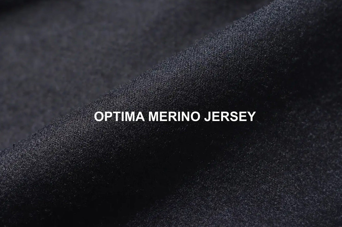 素材には、年間収穫量わずか4%という希少な16.5マイクロンのメリノウールを高密度に編み上げたジャージー素材「Optima 16.5 Merino Jersey」を採用しています。