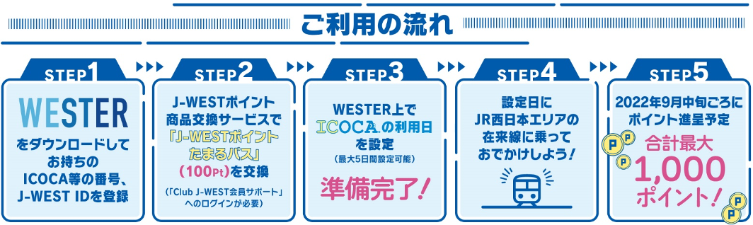 ・設定日に、「WESTER」に番号登録されたICOCA等でJR西日本のICOCAエリアの在来線を利用してください。