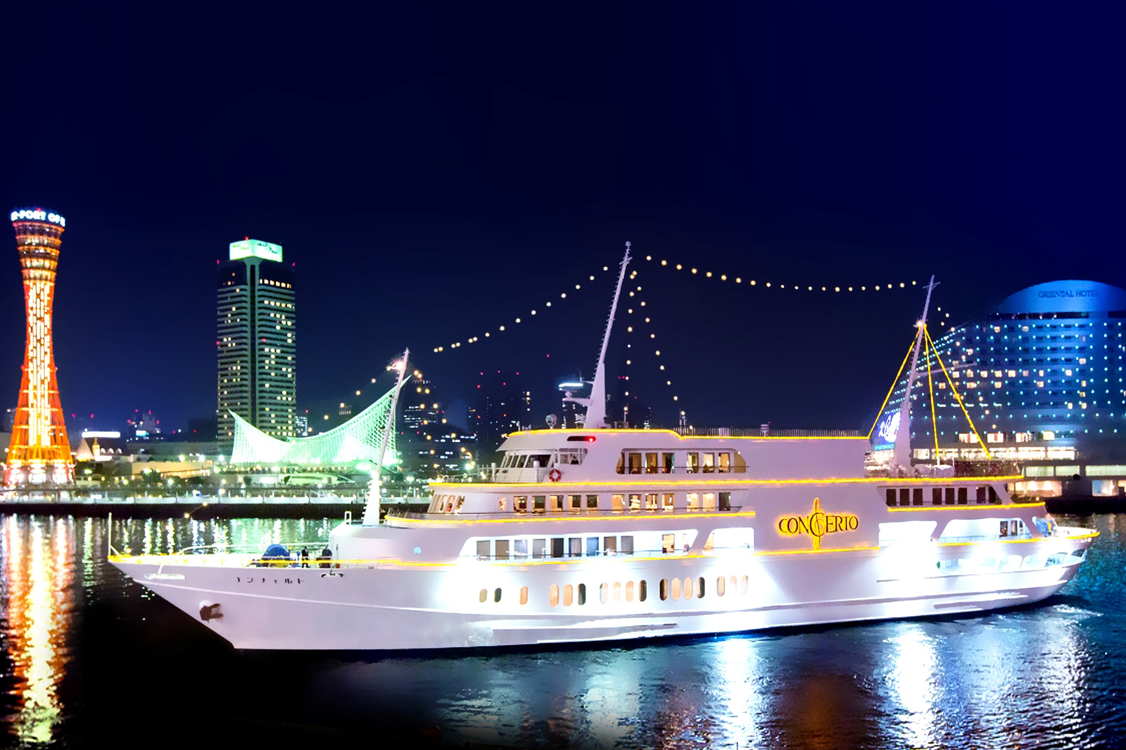 神戸ハーバーランドのモザイクより出航するコンチェルトでは、船上という非日常空間と花火、そして船内レストランでのディナーと生演奏で最高にロマンティックな【地上にない、ひととき】をお過ごしいただけます。