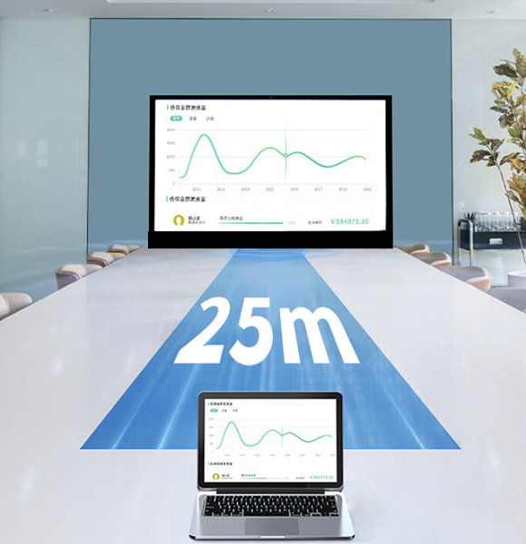 会議室の机の上にプロジェクターなどに接続用のケーブルが多くて煩雑だったり、ケーブルが床に垂れていて転びやすかったり、配線の長さが足りなくて接続できなかったり……会議室の配線について悩んだことはありませんか。「HT02」があれば、もう配線について心配することはありません。さらに、複数の「HT02」の発信機を使用すると、デバイスの画面を切り替えることができ、大人数の場合でも大丈夫です。