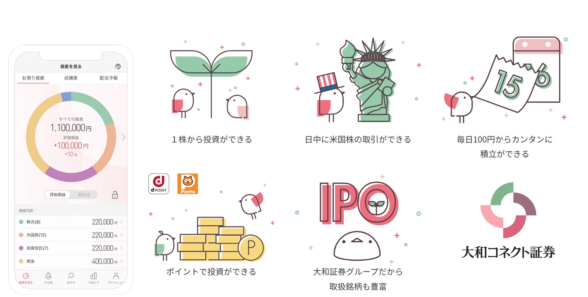 総合口座開設後は、大和コネクト証券の取引アプリ「コネクト」を通じて、当社が取り扱う様々な金融商品・サービスをご利用いただくことが可能になります。