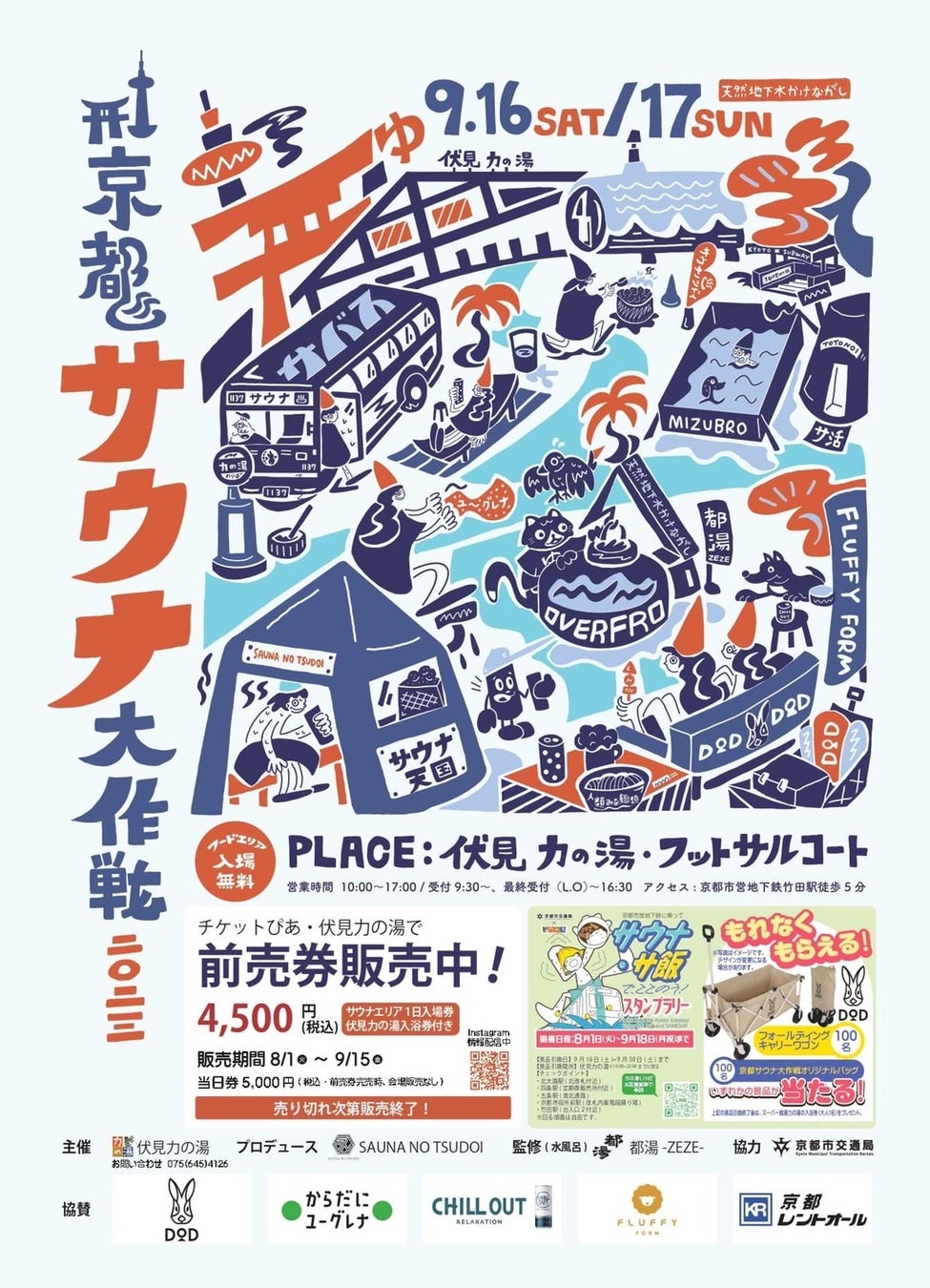 大阪行列No. 1ラーメン店「人類みな麺類(大阪・西中島)」を運営するUNCHI株式会社(本社:大阪市淀川区、代表取締役:松村 貴大)が、「京都伏見力の湯」で開催される西日本最大級の野外サウナフェス「京都サウナ大作戦」に「人類みな麺類」をはじめとする大阪で行列のできるラーメン店を4店舗出店し、らーめん横丁を展開いたします。「京都サウナ大作戦」は日本の名水、京都伏見の天然地下水の源泉かけ流しで“ととのう”野外サウナフェスです。