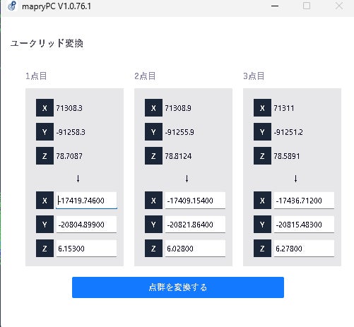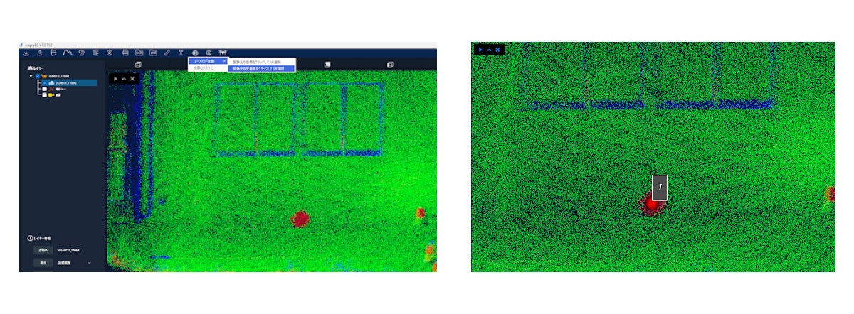 mapryLA01 model2はネットワークRTKでの座標付与、現場標定点での座標変換の両方が可能です。