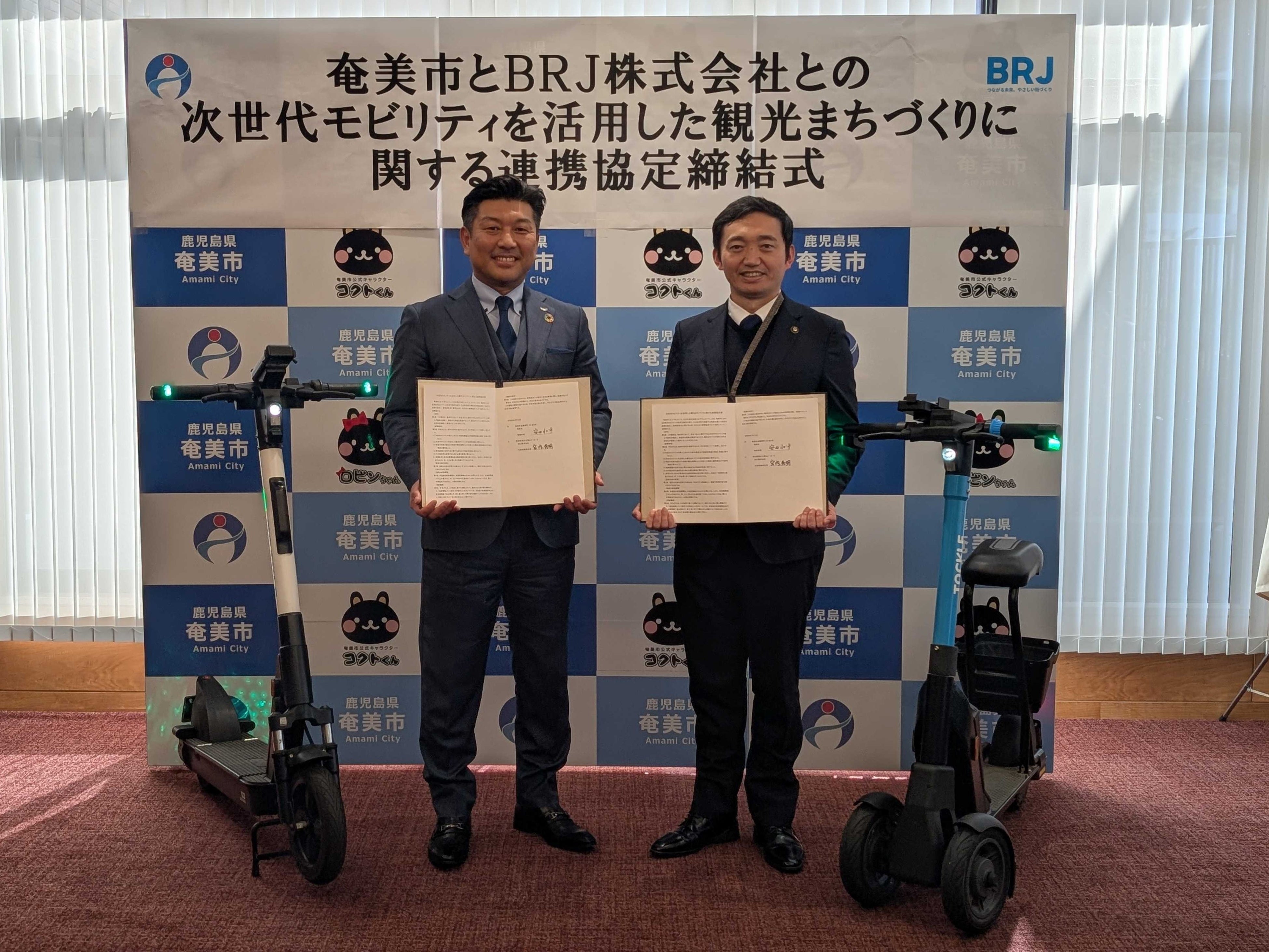 安全で新しい交通手段と地域ごとに最適化した交通オペレーションを提供するBRJ株式会社(本社:東京都港区、代表取締役社長:宮内 秀明、以下「BRJ」)は、奄美市(市長:安田 壮平)と次世代モビリティを活用した「観光まちづくりに関する連携協定」を1月13日(火)に結びました。