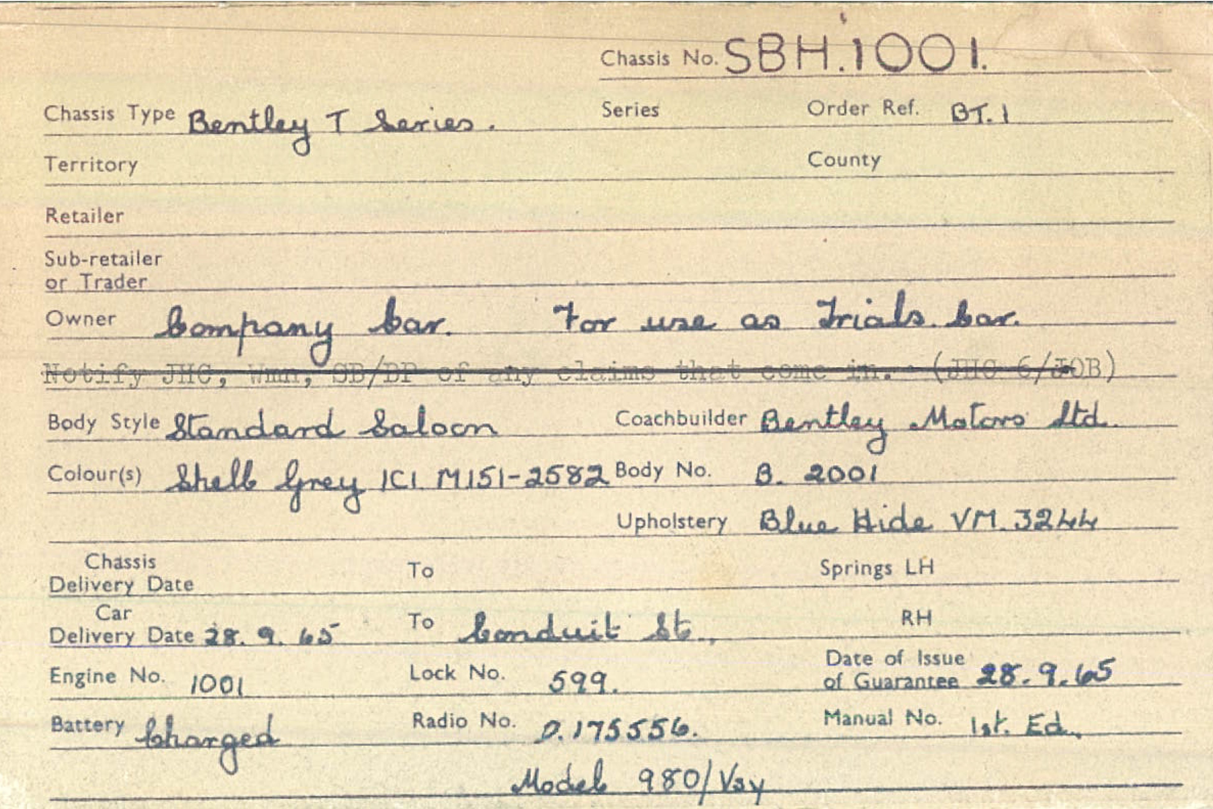 最も古いTシリーズは、1965年9月28日に製造されました。ベントレーモーターズが所有し、世界各地で試運転が行われたこのTシリーズは、シェルグレイのエクステリアペイントとブルーレザーのインテリアで仕上げられました。