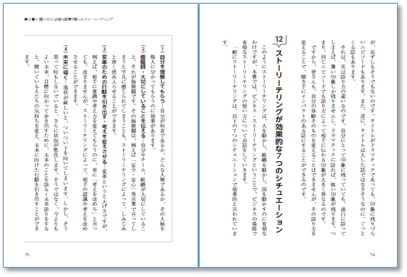 本書では、リーダーが組織の「思考」と「行動」を変えるためにストーリーテリングを使った7つの場面での語り方を伝えています。「なぜ、あのリーダーはメンバーから共感され、信頼されるのか」を紐解き、理解できる1冊となっています。