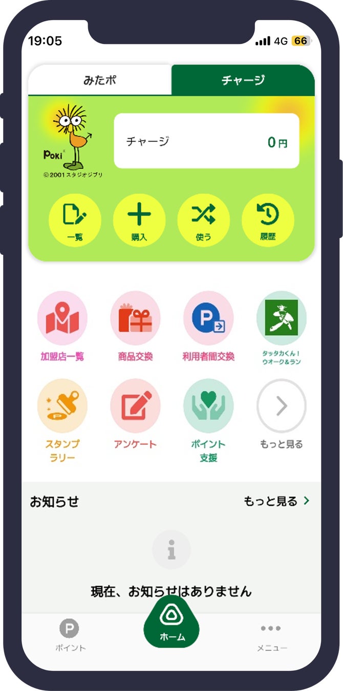 「みたか地域ポイントアプリ」では商品券が利用できる機能のほか、三鷹市内のボランティア活動やイベントなどに参加することで、みたか地域ポイント(愛称:みたぽ)が付与される機能があります。貯まったポイントは一部の市内店舗や公共施設の使用料などの決済、記念品との交換、利用者間のポイント交換などに使うことができます。