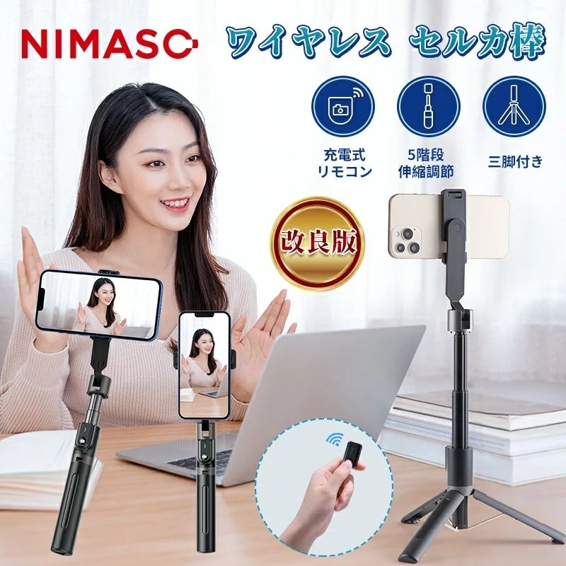 - NIMASOは、2021年製の自撮り棒を改良して、2022年製のをただいま販売しております。