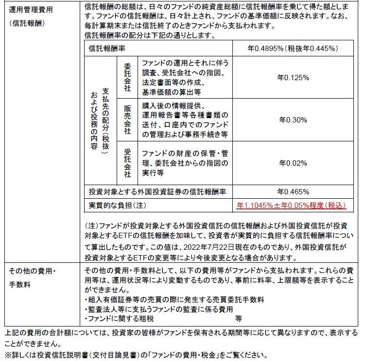 基準価額に0.3%以内の率を乗じて得た額(2022年7⽉22⽇現在0.0%)