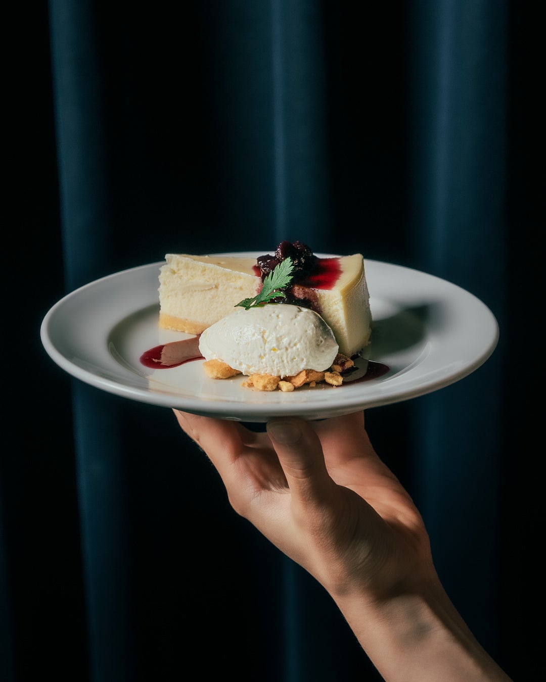 口どけ滑らかで、ほのかな酸味が特徴のNYチーズケーキは、ステーキの口直しにぴったり。ブルーベリー仕立てのソースと濃厚なクリームを絡ませることで深い味わいが楽しめる、お店自慢のおすすめのスイーツです。