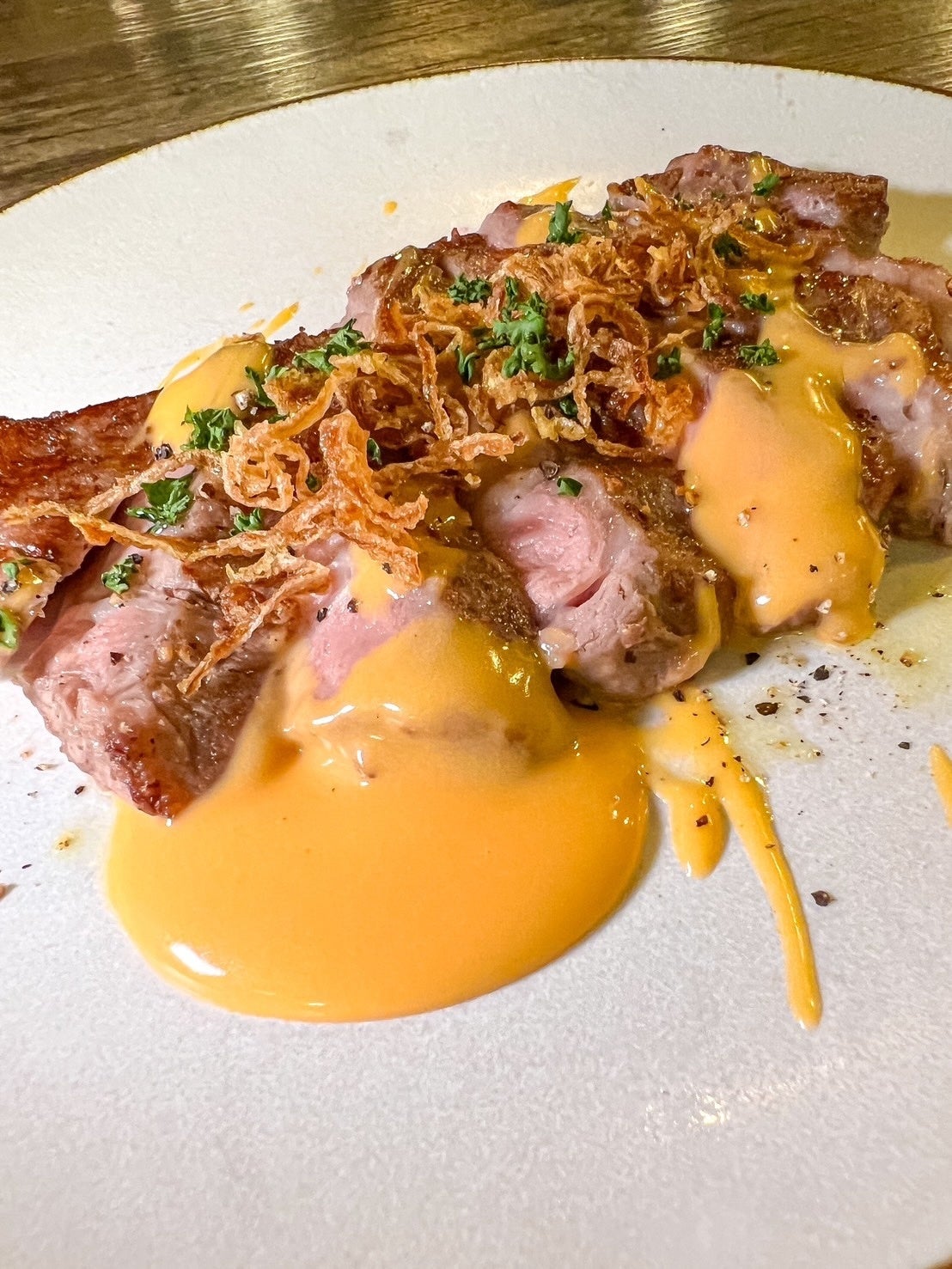 肉イベントのマストメニューの牛タンは、【韓国焼肉sisi】から「厚切り牛タンステーキ」が登場。コリコリの食感と旨みを味わうために塩胡椒とわさびでシンプルに。【石垣島きたうち牧場】の和牛とじゃがいもだけで作る特別なコロッケ「黒毛和牛極みビーフコロッケ 2個」や、牛カルビの肉汁を特製おろしポン酢でさっぱりといただく「黒毛和牛カルビステーキ&特製おろし」、わさびが旨みをさらに引き立たせる【肉処 天穂】の「熟成佐賀牛ステーキ」など和風やシンプルな味付け派もご安心を。お店自慢の生パスタを使用した【PASTA DINER PITANGO】の最高に“肉肉しい”「メガミンチミートソースの生パスタ」や【BAYSIDE BEEF KITCHEN】の「牛タンガーリックライス」、【BISTRO THE MEAT】の「マッケイン フライドポテト」は、シメとしてもサイドメニューとしてもOK。