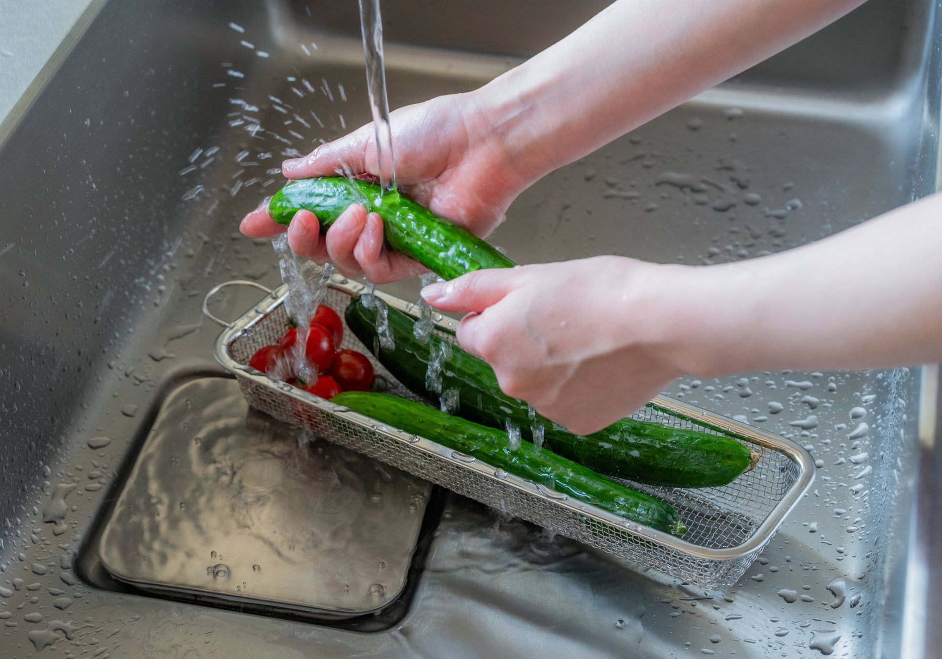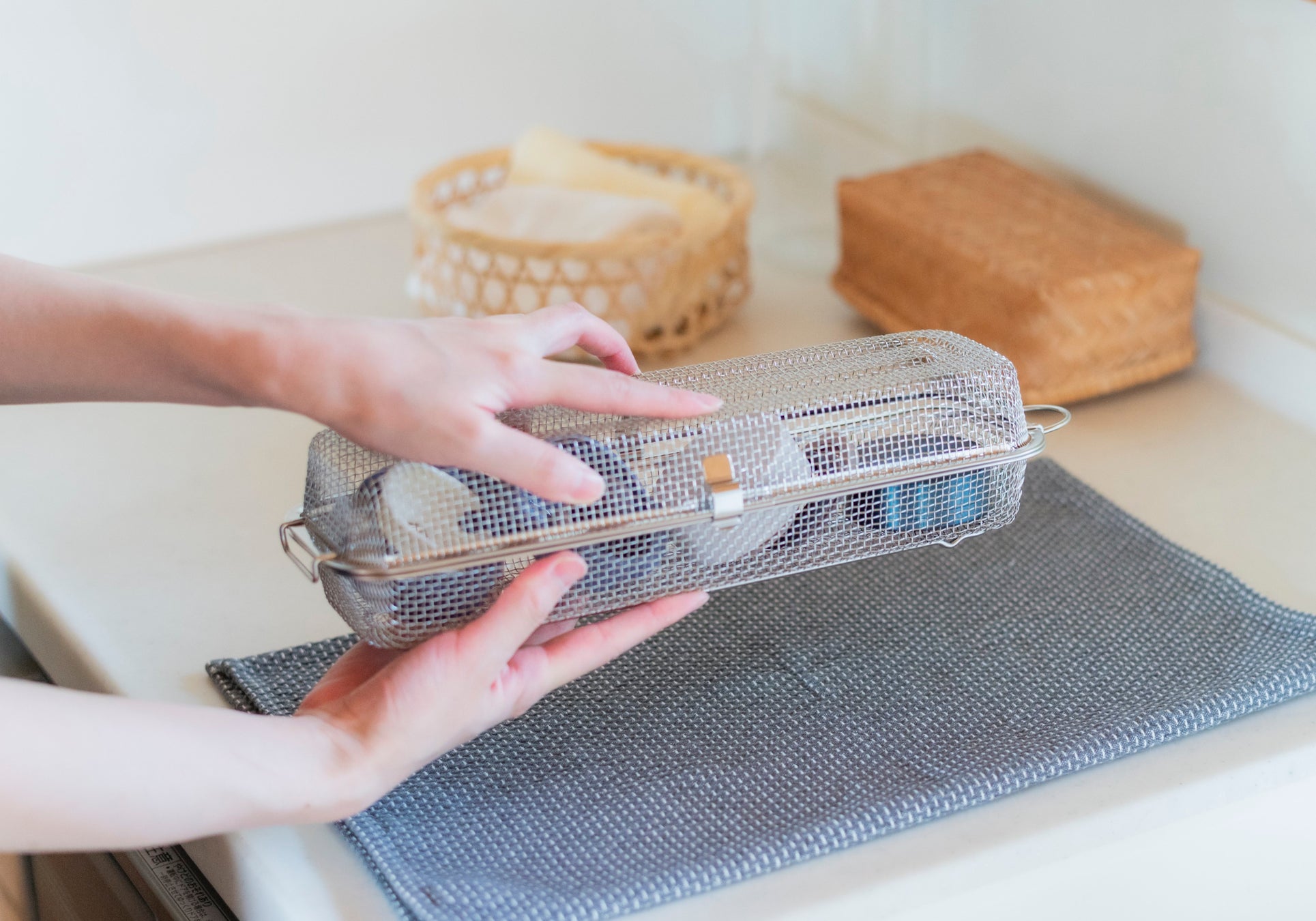 脚付きだから、シンクにそのまま置いても食材が直接触れず衛生的。かごの中でそのまま水切りしても、通気性が良く、乾きやすさを手助けしてくれます。