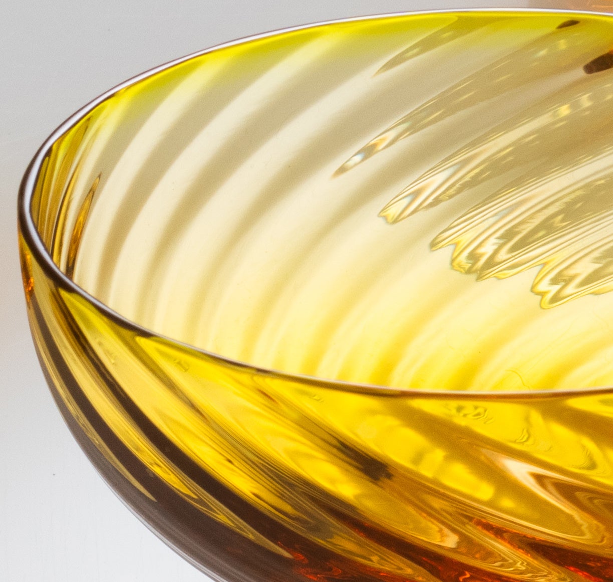 高温で熱せられ柔らかくなったガラスを専用の型に押込み、その後素早くねじります。刻々と変化するガラスの状態を適切に見極めることで、一定の品質を保った製品ができあがります。