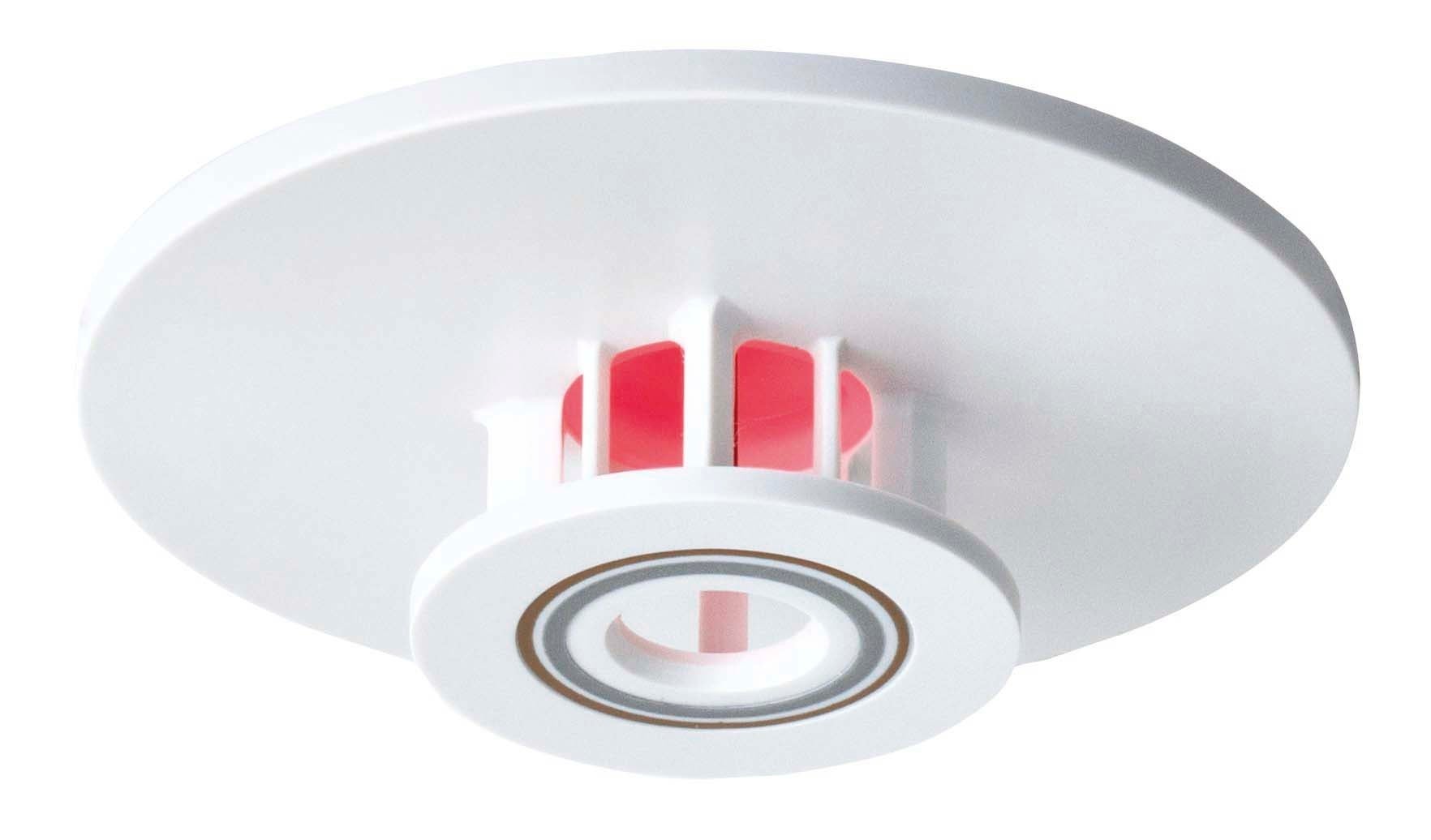 小さく薄いフォルムと自然なホワイト色で、空間デザインを損なわない熱感知器です。