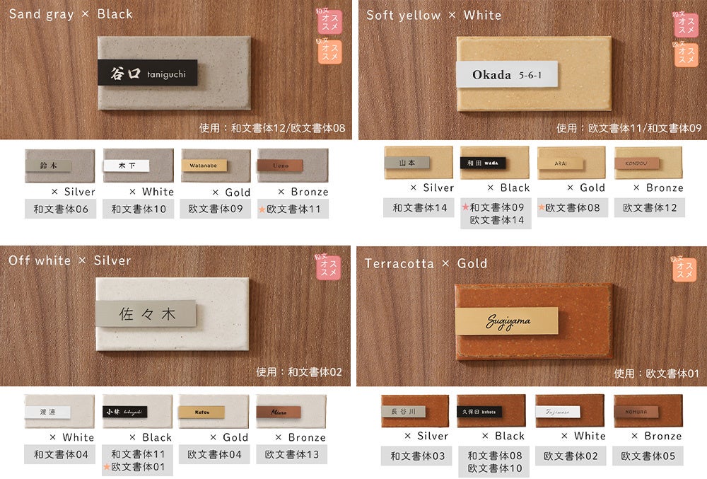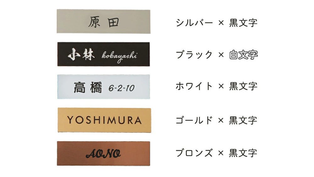 表札の文字パターンは「日本語」「ローマ字」「日本語+ローマ字(英数字)」の3パターンご用意しています。