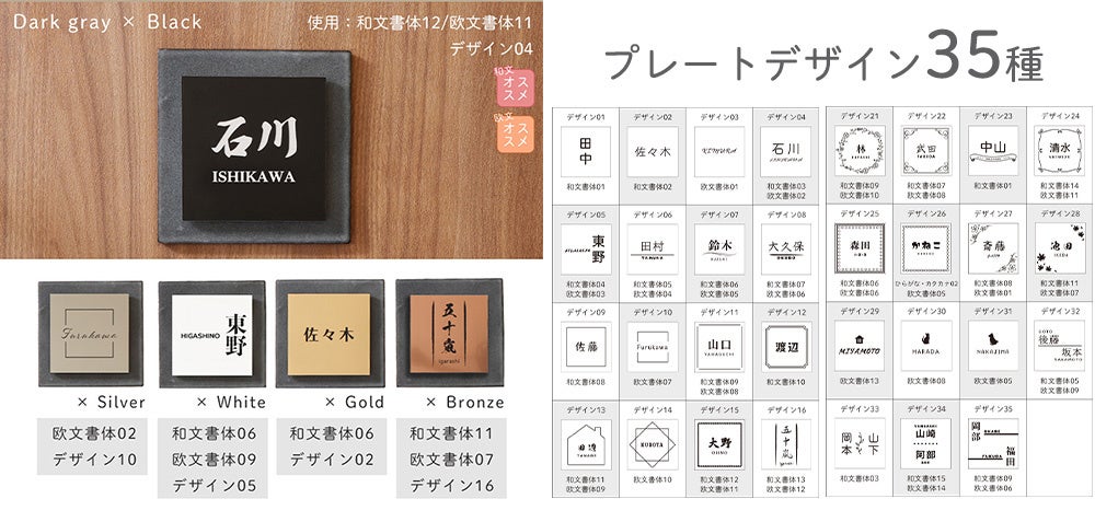 戸建て住宅に人気のスクエアタイプは、35種類のプレートデザインをご用意しています。