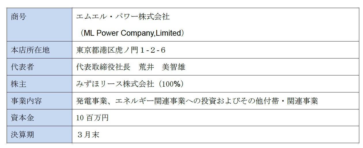 みずほリース株式会社は、2024年4月1日付で当社の連結子会社であるエムエル・エステート株式会社(以下「MLE」)が保有していた、環境エネルギー関連ビジネスを手掛けるグリーンパワーマネジメント株式会社(以下「GPM」)の全株式(議決権比率100%)を取得し、GPMを当社の連結子会社としました。また同日付で、GPMは、エムエル・パワー株式会社(以下「MLP」)へ商号変更しました。