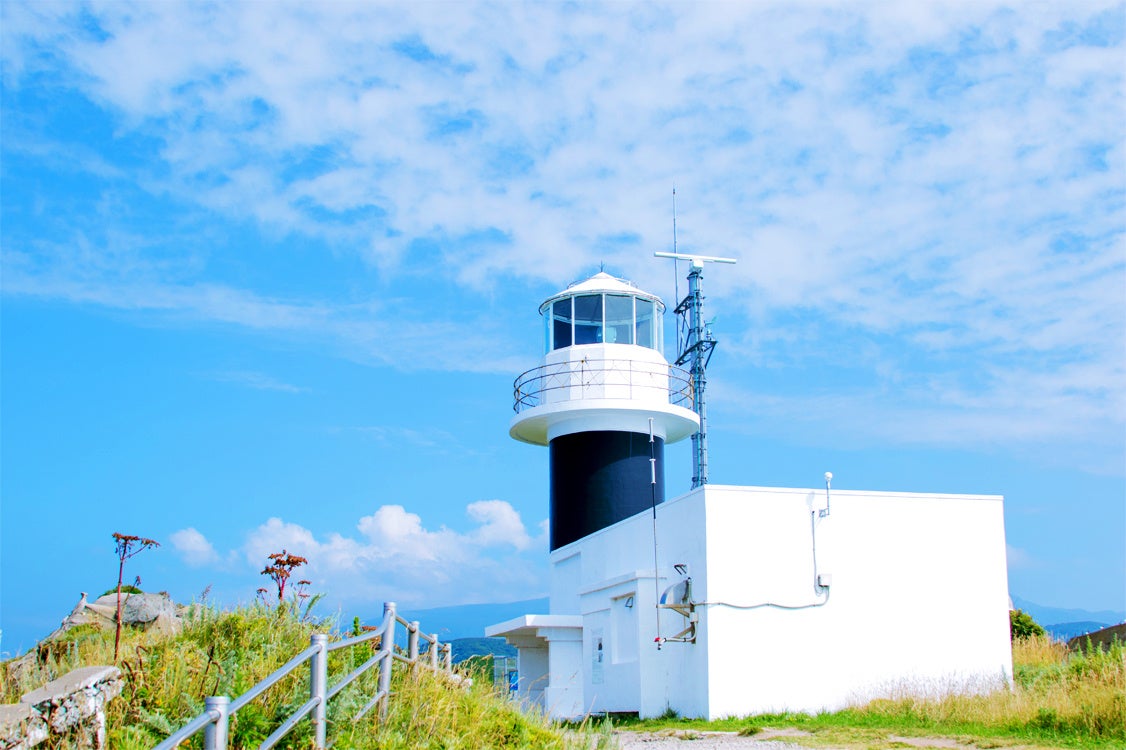 札幌市から約70km西の積丹半島北西部、標高80mの神威岬に建つ小さな灯台です。神威岬周辺は日本海屈指の海の難所で、岬の先の海中にあった人の形をした巨岩を「神」として崇め、捧げものをしていました。そこから、アイヌ語で「神」を意味する「カムイ」という名が付けられています。周囲には「積丹ブルー」と呼ばれる青く澄んだ美しい海が広がり、絶景が望める一方、冬季や強風時など1年の半分以上は立ち入りが禁止されます。女人禁制の伝説など、自然と神の畏敬が感じられる物語をお楽しみください。