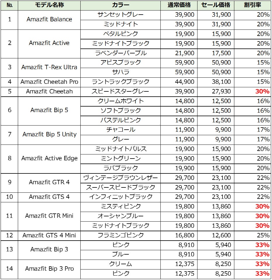 Zepp Health Corporationの独自ブランドである「Amazfit」は、2024年7月11日(木)0:00から7月15日(月)23:59まで開催される「プライムデー先行セール」および、7月16日(火)0:00から7️月17日(水)23:59まで開催される「Amazon プライムデー」において、Amazfitの人気の合計14製品を出品いたします。今年は、最大33%OFFの製品も登場します。