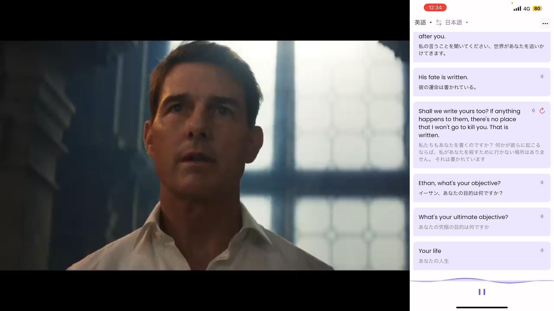 例として、「Mission: Impossible – Dead Reckoning Part One」という最新映画の英語予告編を、Felo Translatorを使ってリアルタイムで翻訳し、その効果を見てみましょう。