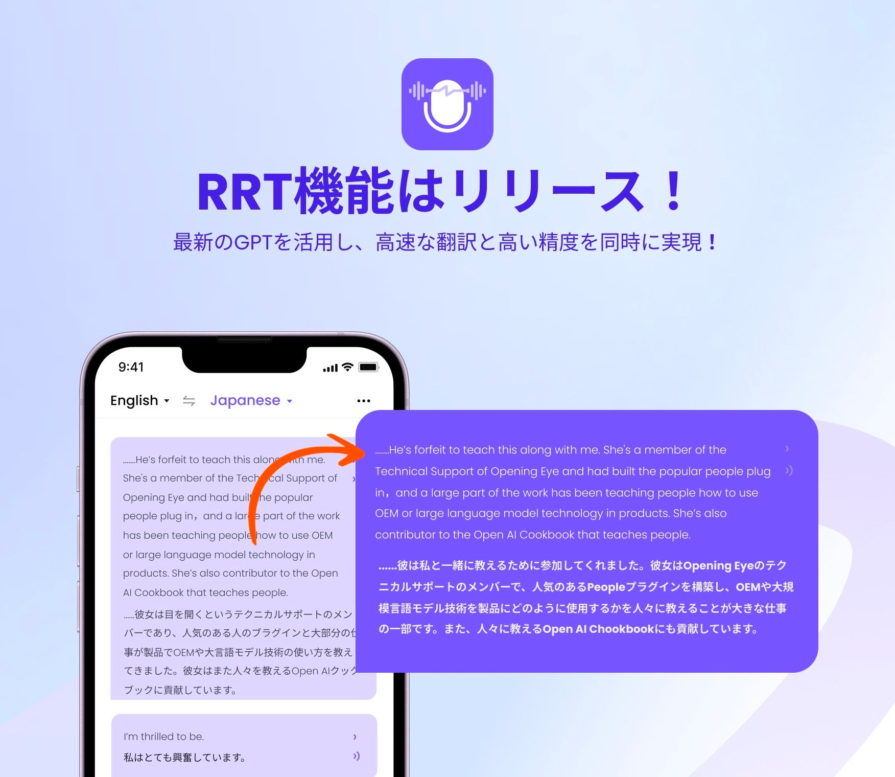 RRT機能がリリースされました!最新のGPTを活用し、高速な翻訳と高い精度を同時に実現しています。