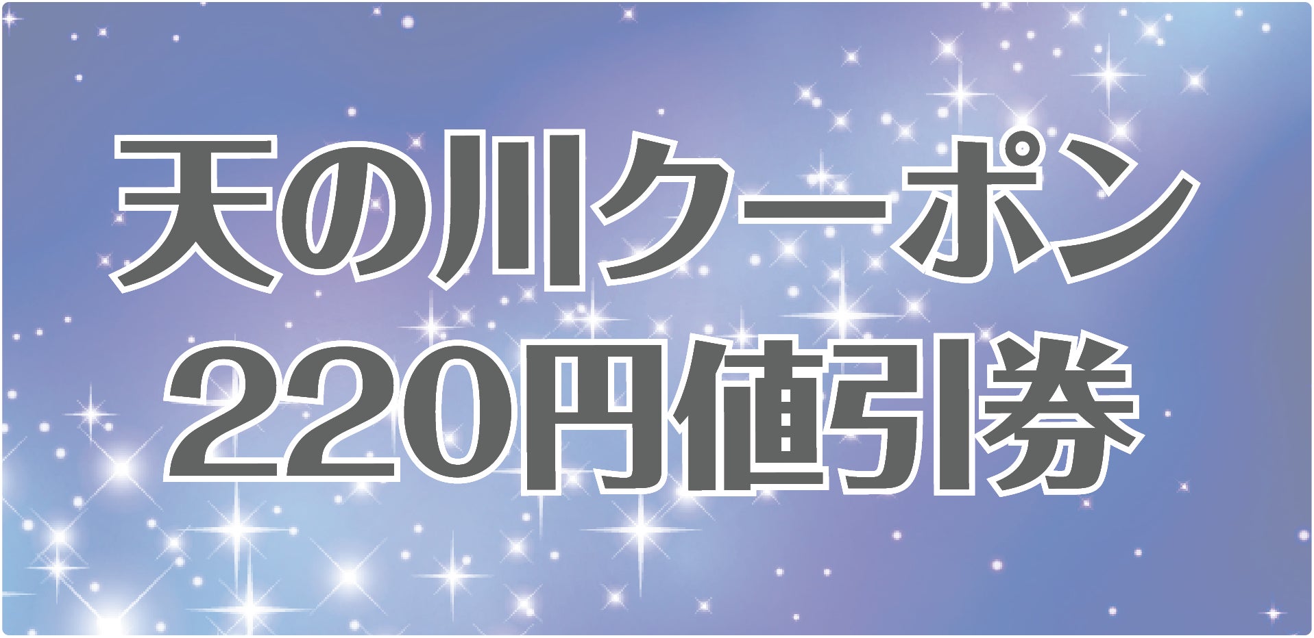 アプリからご応募いただいた方全員に、7月5日(土)~7月7日(日)に使える「天の川クーポン220円値引券」をプレゼント!