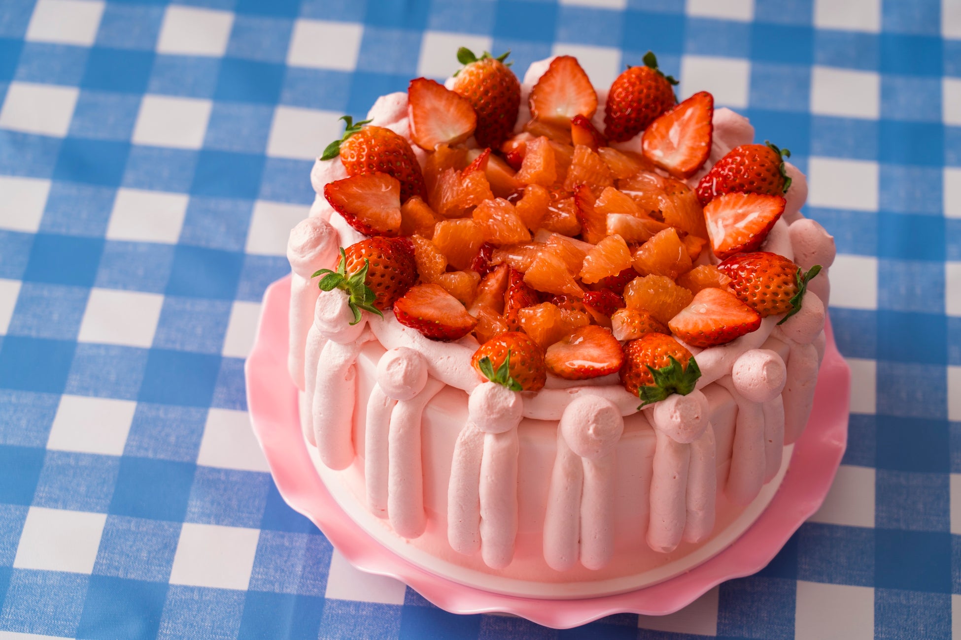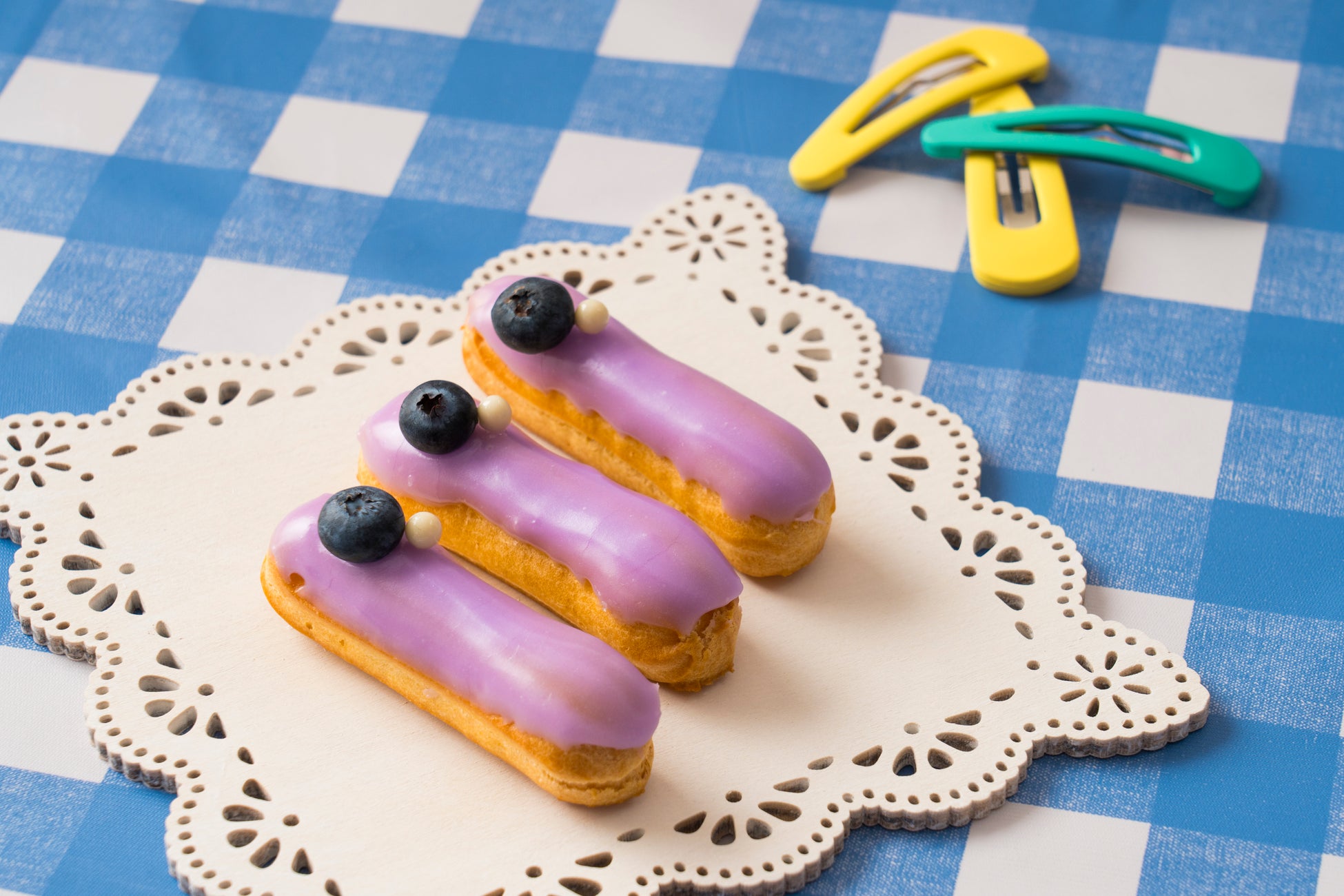 鮮やかなグリーンカラーが目を引く「とっておきのおしゃれハット」は、ミント風味のムースケーキにメロン味のジュレを乗せ、ホイップクリームとフレッシュメロンで仕上げた爽やかな一品。ふんわりとしたスポンジ生地にグレープフルーツ果汁を使用したシロップを染み込ませ、生クリームでサンドしたショートケーキ「カリスマたちのお気に入り」は、ピンク色のクリームに苺とピンクグレープフルーツの果実を贅沢にトッピングしたケーキです。また、濃厚なレアチーズケーキの上に爽やかな味わいのブラッドオレンジのゼリーを乗せ、ギンガムチェックのような模様で仕上げた「ギンガムレアチーズ」や、生クリームと合わせた甘いカスタードクリームとブルーベリージャムのフレッシュさが、どこか甘酸っぱい気持ちを思い出させる「あの子のヘアバレッタ」など、愛らしいスイーツの数々が“レトロポップ”エリアのビュッフェ台を彩ります。