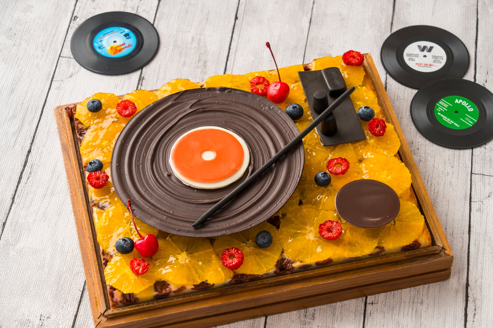 一方、“レトロクラシック”エリアには、イギリスの伝統的なヴィクトリアケーキをベースに、しっとりとした食感と軽さを併せ持ったコクのある生地でローズシロップ、ラズベリージャム、バタークリームをサンドした「クラシカル・ヴィクトリアケーキ」や、サワーチェリーコンポートの酸味とカスタードクリームの甘さ、サクサクのアーモンドタルトの食感をぎゅっと詰め込んだ「想い出のチェリータルト」など、昔懐かしい洋画で見たような雰囲気のスイーツが登場。そのほかにも、すももを敷いて焼き上げた甘酸っぱいタルトにフレッシュオレンジを乗せ、チョコレートでレコードプレイヤーのようにデコレーションしたインパクト大の「オレンジ・ターンテーブル」に加え、「大人のカフェロール」は、コーヒー味の生地でコーヒーバタークリームを包み、アクセントにオレンジコンフィを忍ばせた、コーヒー好きの方に特に味わっていただきたい一品です。