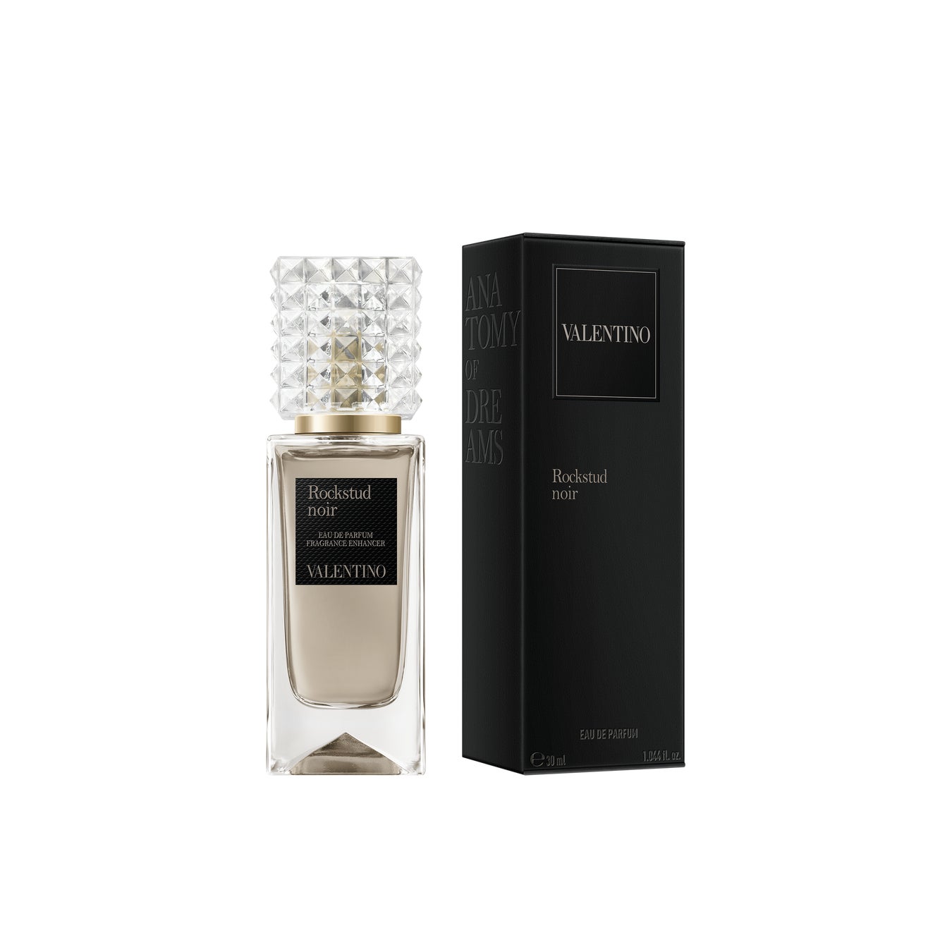 「ロックスタッズ ノワール オードパルファン(サンダルウッド)」は、ミステリアスで官能的な印象に。濃厚なサンダルウッドの香りが、宮殿の夢のひと時にやみつきになるような余韻を残します。「ロックスタッズノワール」は、メゾンの象徴的なスタッズにちなんだ名称です。