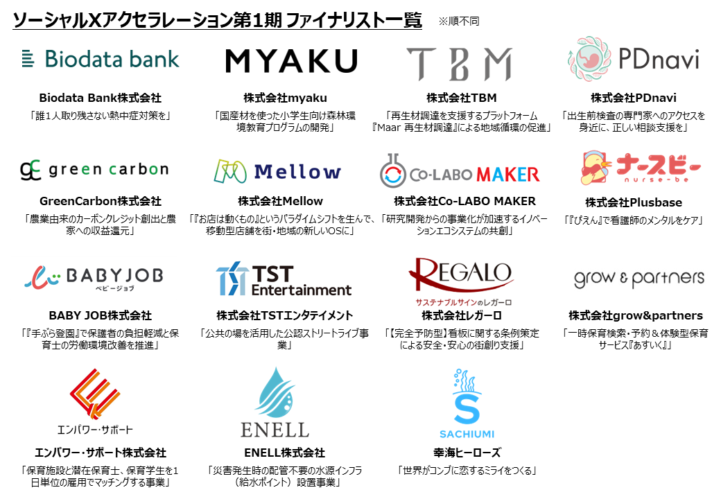 【ソーシャル・エックス】官民共創型アクセラレーションプログラム「ソーシャルXアクセラレーション」にて、第1期のファイナリストが決定!