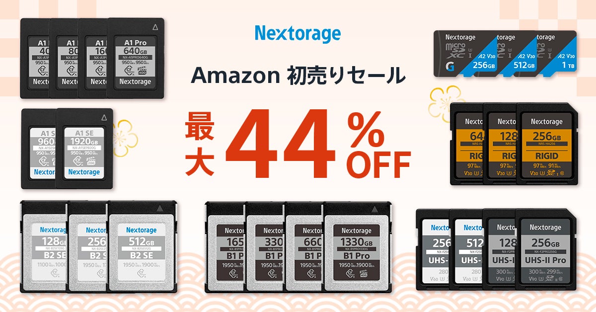 [Nextorageセール情報] Amazon 初売り 参加のお知らせ CFexpress Type BメモリーカードNX-B1PROシリーズが最大44%OFF 新製品含む計34アイテムがセール対象に
