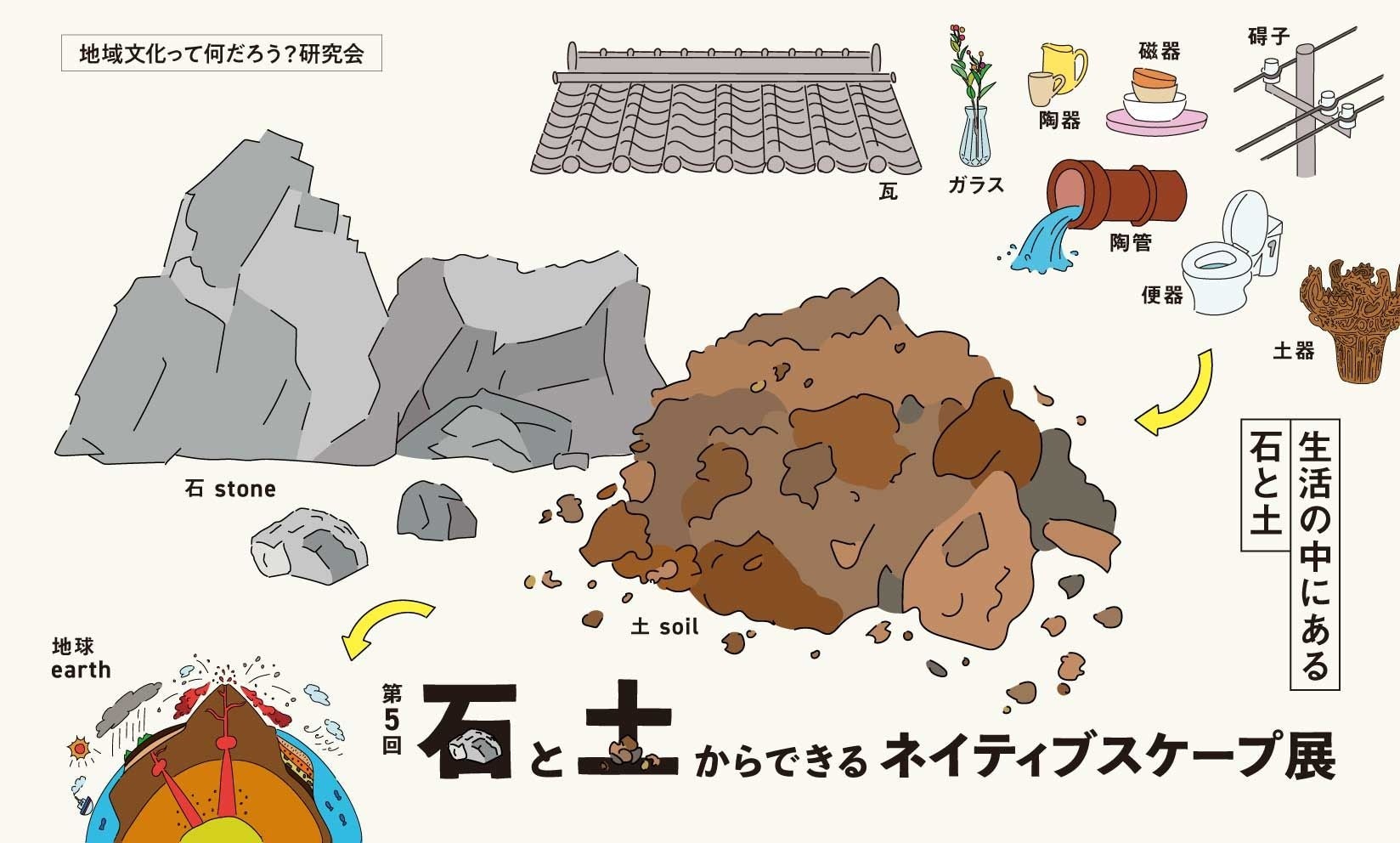 身近な生活の中にある石と土のものにふれ、ネイティブスケープ(その土地固有の風景)を確かめながら自分にぴったりのもの、見つけてみませんか?