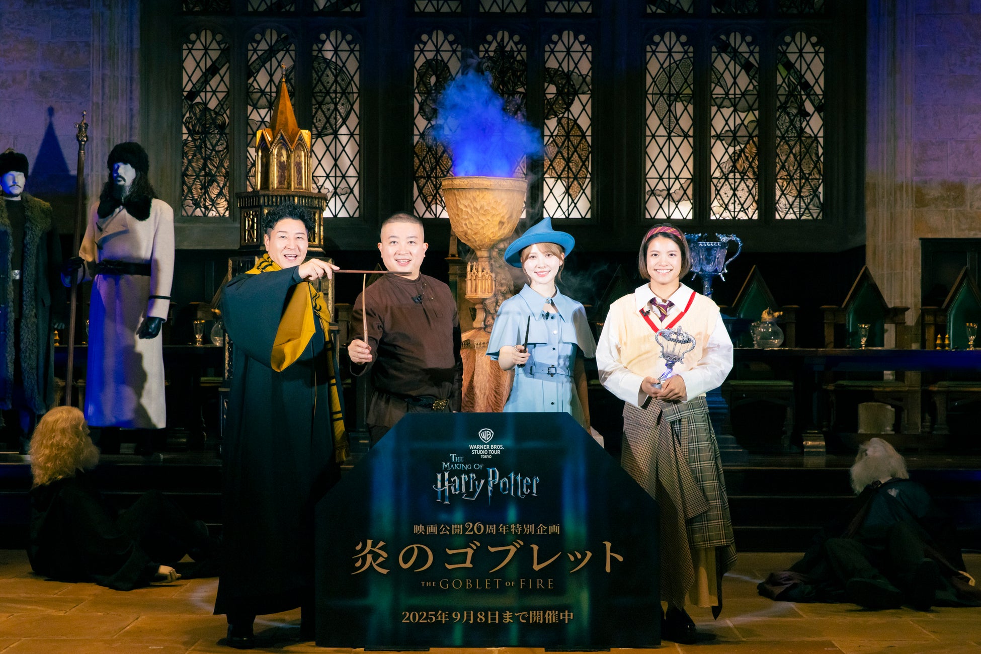 開催を記念し、4月22日(火)に 「炎のゴブレット」お披露目セレモニーを実施しました。イベントには、「ハリー・ポッター」ファンであるチョコレートプラネットの長田庄平さんと松尾駿さん、元日向坂46で現在は女優として活躍する加藤史帆さん、そして<伝説の試合>にちなみ、数々の伝説が生まれる戦いの場に挑んでいる柔道家でパーク24株式会社所属の阿部詩選手が登場。