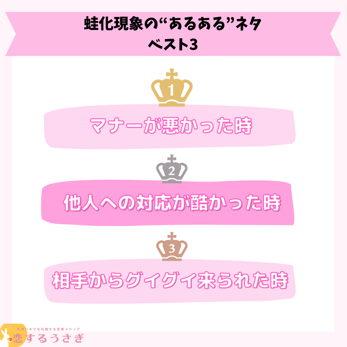 蛙化現象のあるあるネタ例一覧!女性100人に聞いた体験談
